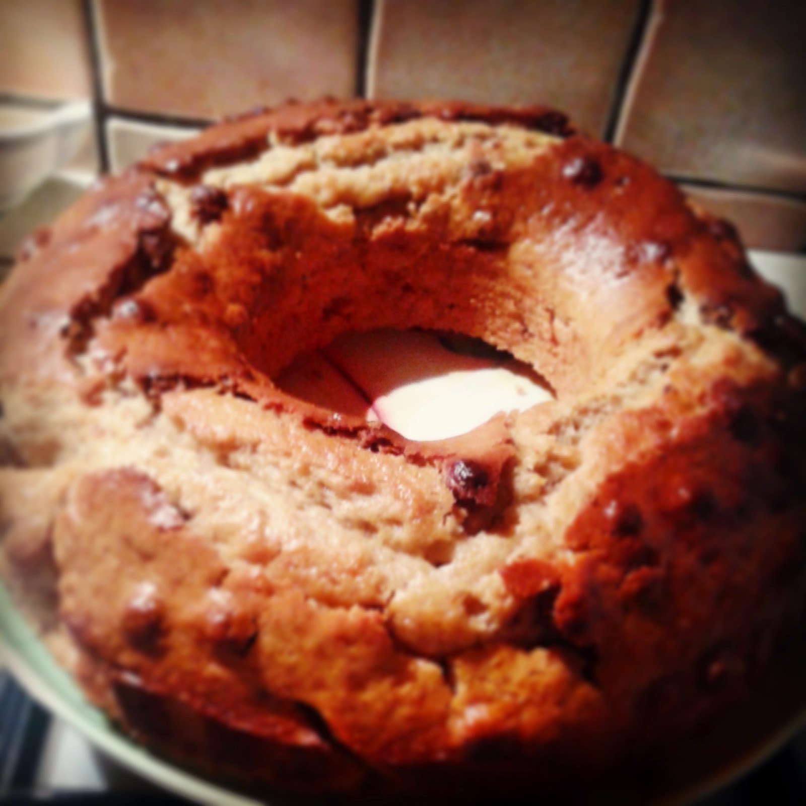 Ho messo tutti gli ingredienti in un contenitore, ho lavorato per bene il composto e ho aagiunto delle palline di cereali al cioccolato che mi erano avanzati, ho imburrato e infarinato una ciambelliera, ho infornato a 180° per 45 minuti… Buona colazione